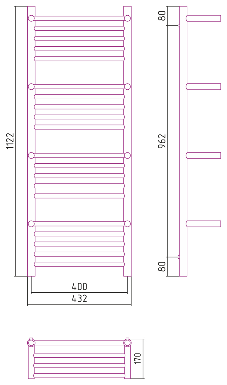 Внешние габариты (высота х ширина х глубина) (мм) : 1122x432x170